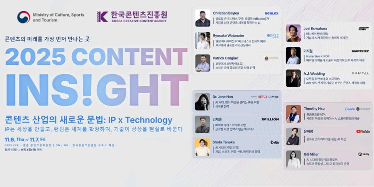 The global content industry is entering a pivotal transformation — where intellectual property, immersive storytelling, and artificial intelligence converge to create new forms of cultural and commercial value. To explore this evolution, the Ministry of Culture, Sports and Tourism (MCST) and the Korea Creative Content Agency (KOCCA) will host 2025 CONTENT INSIGHT, Korea’s premier creative forum, on November 6–7, 2025, at the Hongneung Content Culture Plaza in Seoul.