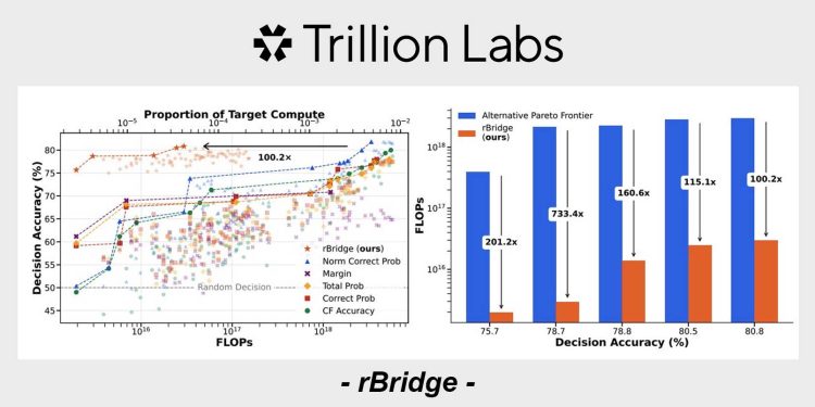 Trillion Labs’ rBridge addresses this gap by designing a predictive method that aligns model evaluation with actual learning objectives. This allows smaller models to simulate and forecast the behavior of much larger ones with high accuracy, dramatically cutting down computational expenses.
